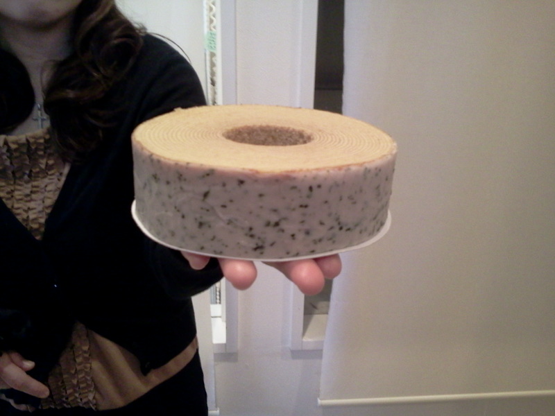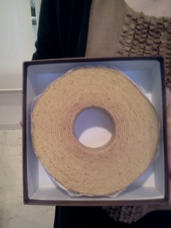 の お土産げ だいすきなバームクーヘン 千年樹バーム 年輪だ うひょ まわりのコーティングが かわってて美味しそー ぱくぱく