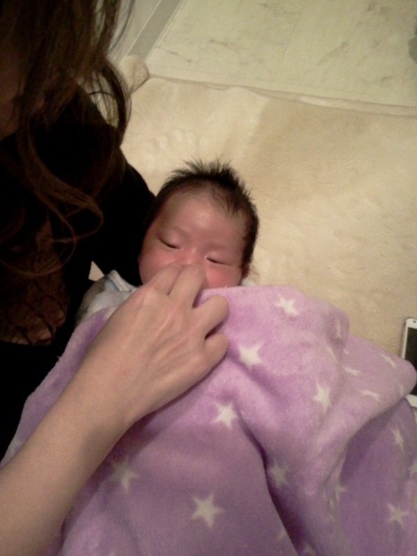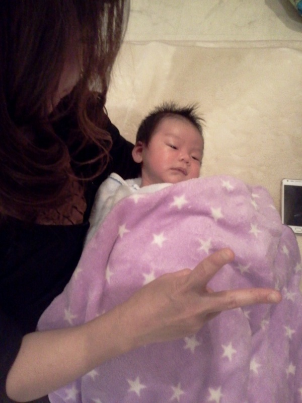 たけこちゃん・・ちょい仕事しに来ました(^-^)♪ そのあいだ・・ ばーばたちで順番に子守り ほっぺたぷにゅぅ~ ちっちゃい 12年ぶりできんちょ~ つつきたい 寝ちゃった
