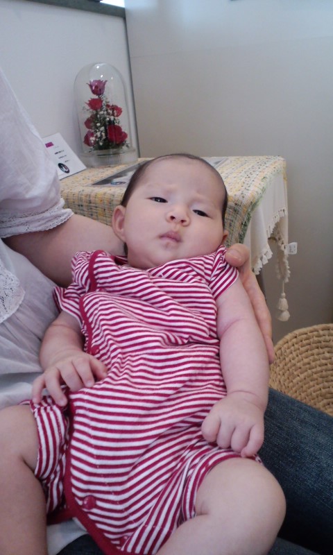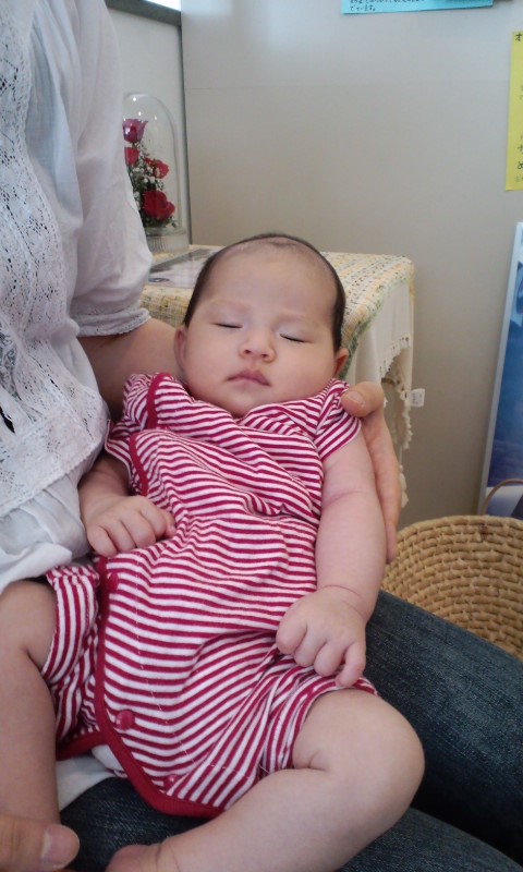 今日は 以前一緒に働いていたスタッフが 先月産まれたばかりのBabyをつれて遊びにきてくれました 名前は来未(くるみ)ちゃん かわいい女の子です ちょっとおねむだったのか 気持ち良さそうにスヤスヤ 寝顔を見てるだけで癒されちゃいますね 県外からの里帰り出産だったので お盆明けには広島へ帰ってしまうみたい 今度会える時は もう歩いてたりするのかな・・・ すくすくと元気いっぱいに大きくなってね