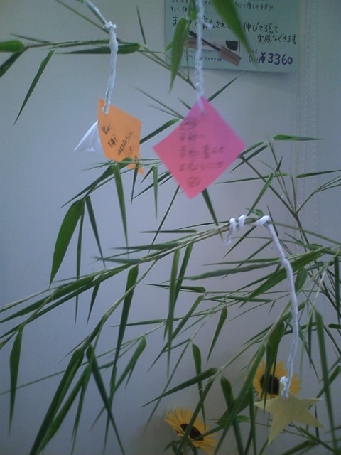 今日は七夕だけど・・・ 雨降りですね 天の川はおあずけのようです・・・ MIUは 笹にお願い事を書いてつるしてます お客さんの願い事・・ 叶いますように